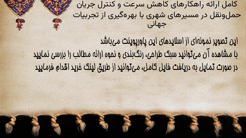 پاورپوینت کامل ارائه راهکارهای کاهش سرعت و کنترل جریان حملونقل در مسیرهای شهری با بهرهگیری از تجربیات جهانی