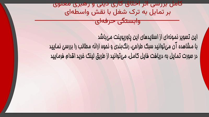 پاورپوینت کامل بررسی اثر اخلاق کاری دینی و رهبری معنوی بر تمایل به ترک شغل با نقش واسطهای وابستگی حرفهای