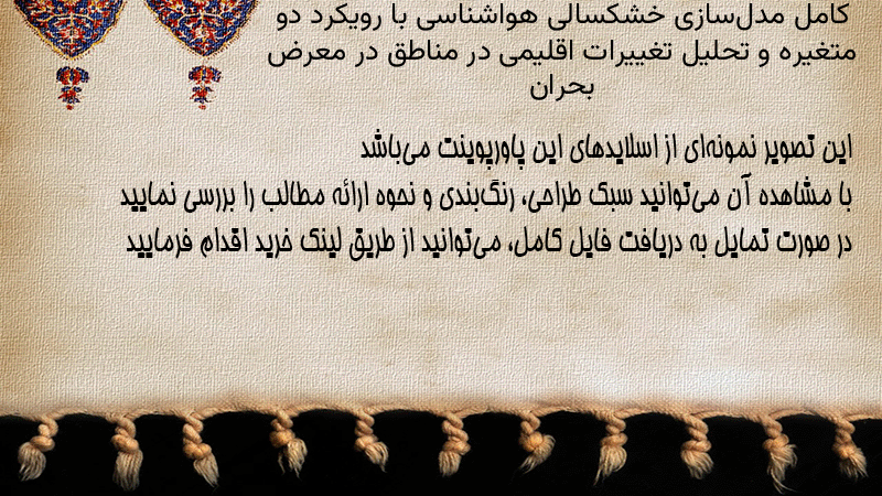 پاورپوینت کامل مدلسازی خشکسالی هواشناسی با رویکرد دو متغیره و تحلیل تغییرات اقلیمی در مناطق در معرض بحران