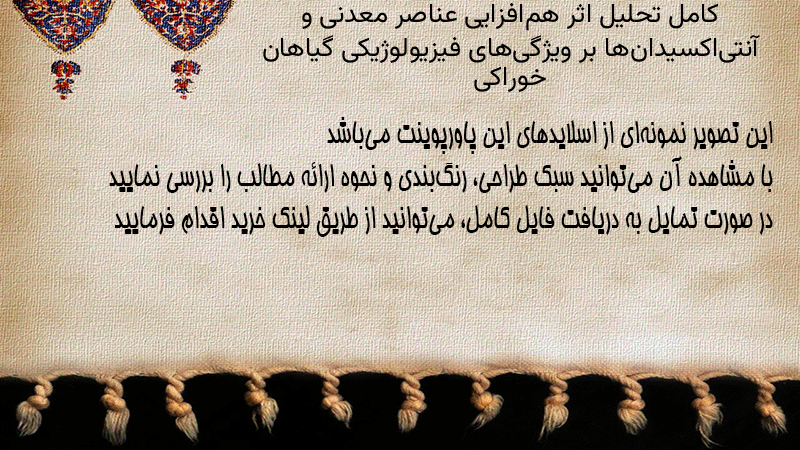 پاورپوینت کامل تحلیل اثر همافزایی عناصر معدنی و آنتیاکسیدانها بر ویژگیهای فیزیولوژیکی گیاهان خوراکی