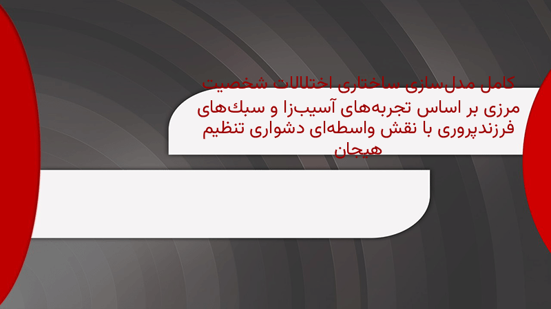 پاورپوینت کامل مدلسازی ساختاری اختلالات شخصیت مرزی بر اساس تجربههای آسیبزا و سبکهای فرزندپروری با نقش واسطهای دشواری تنظیم هیجان