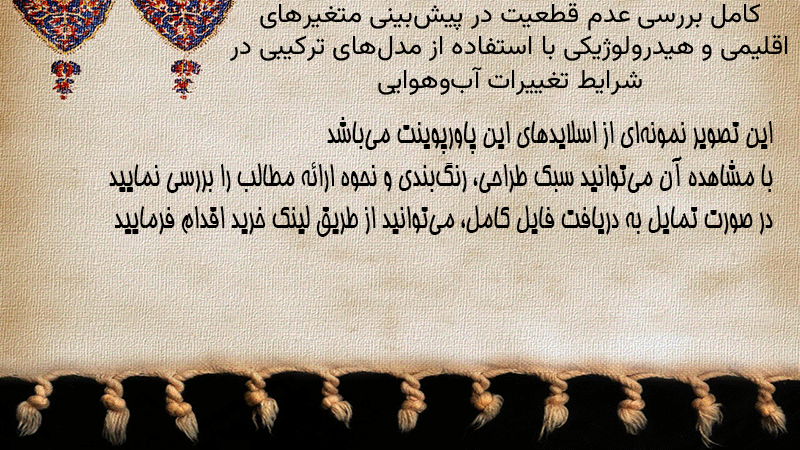 پاورپوینت کامل بررسی عدم قطعیت در پیشبینی متغیرهای اقلیمی و هیدرولوژیکی با استفاده از مدلهای ترکیبی در شرایط تغییرات آبوهوایی