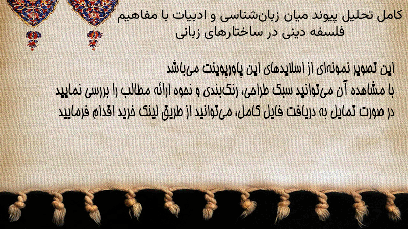 پاورپوینت کامل تحلیل پیوند میان زبانشناسی و ادبیات با مفاهیم فلسفه دینی در ساختارهای زبانی