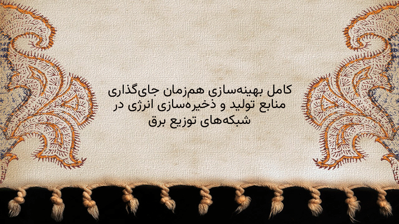 پاورپوینت کامل بهینهسازی همزمان جایگذاری منابع تولید و ذخیرهسازی انرژی در شبکههای توزیع برق