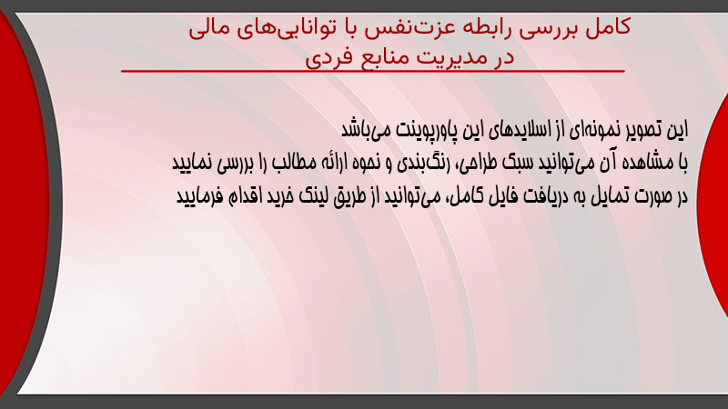 پاورپوینت کامل بررسی رابطه عزتنفس با تواناییهای مالی در مدیریت منابع فردی