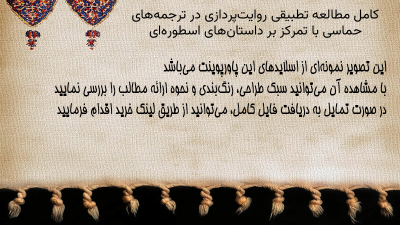 پاورپوینت کامل مطالعه تطبیقی روایتپردازی در ترجمههای حماسی با تمرکز بر داستانهای اسطورهای
