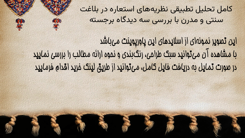 پاورپوینت کامل تحلیل تطبیقی نظریههای استعاره در بلاغت سنتی و مدرن با بررسی سه دیدگاه برجسته