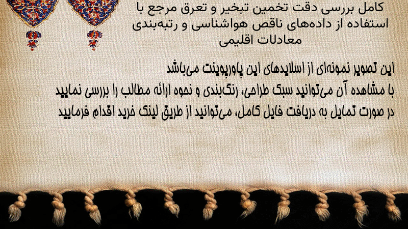 پاورپوینت کامل بررسی دقت تخمین تبخیر و تعرق مرجع با استفاده از دادههای ناقص هواشناسی و رتبهبندی معادلات اقلیمی
