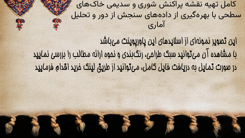 پاورپوینت کامل تهیه نقشه پراکنش شوری و سدیمی خاکهای سطحی با بهرهگیری از دادههای سنجش از دور و تحلیل آماری