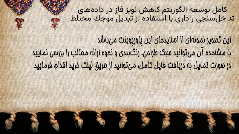 پاورپوینت کامل توسعه الگوریتم کاهش نویز فاز در دادههای تداخلسنجی راداری با استفاده از تبدیل موجک مختلط