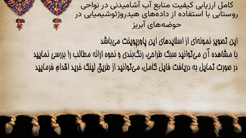 پاورپوینت کامل ارزیابی کیفیت منابع آب آشامیدنی در نواحی روستایی با استفاده از دادههای هیدروژئوشیمیایی در حوضههای آبریز