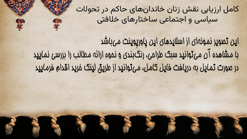 پاورپوینت کامل ارزیابی نقش زنان خاندانهای حاکم در تحولات سیاسی و اجتماعی ساختارهای خلافتی