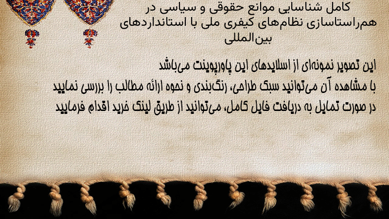 پاورپوینت کامل شناسایی موانع حقوقی و سیاسی در همراستاسازی نظامهای کیفری ملی با استانداردهای بینالمللی