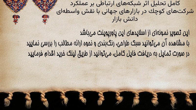 پاورپوینت کامل تحلیل اثر شبکههای ارتباطی بر عملکرد شرکتهای کوچک در بازارهای جهانی با نقش واسطهای دانش بازار