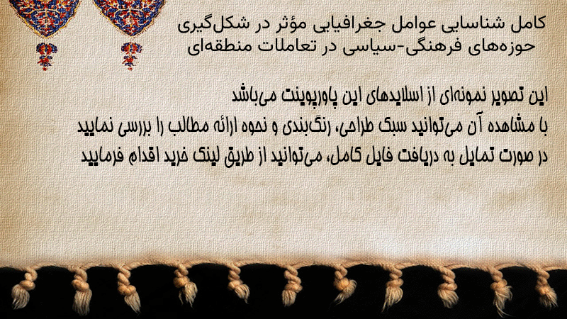 پاورپوینت کامل شناسایی عوامل جغرافیایی مؤثر در شکلگیری حوزههای فرهنگی-سیاسی در تعاملات منطقهای