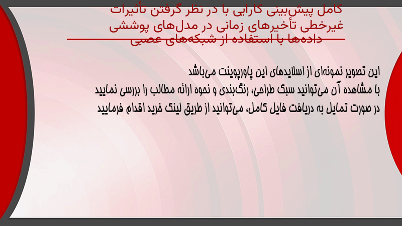 پاورپوینت کامل پیشبینی کارایی با در نظر گرفتن تأثیرات غیرخطی تأخیرهای زمانی در مدلهای پوششی دادهها با استفاده از شبکههای عصبی