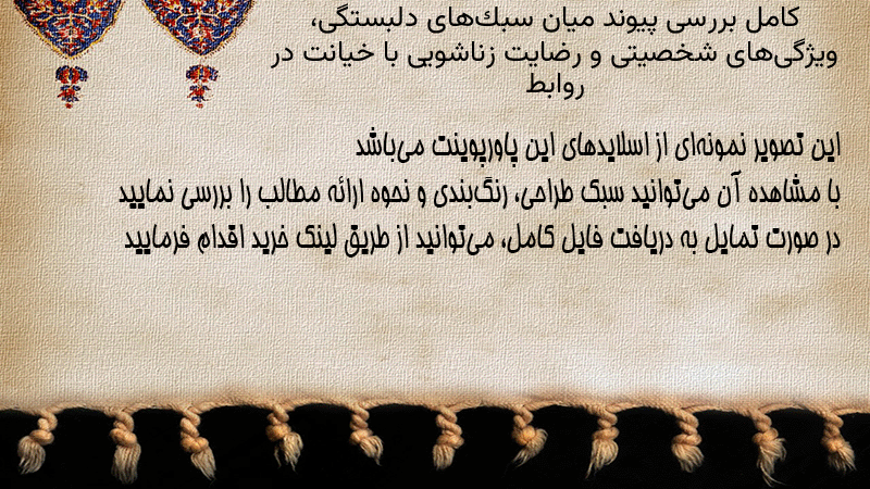 پاورپوینت کامل بررسی پیوند میان سبکهای دلبستگی، ویژگیهای شخصیتی و رضایت زناشویی با خیانت در روابط