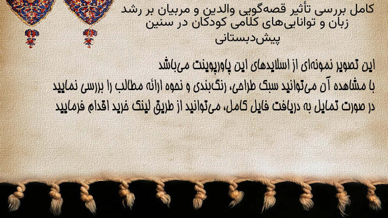 پاورپوینت کامل بررسی تأثیر قصهگویی والدین و مربیان بر رشد زبان و تواناییهای کلامی کودکان در سنین پیشدبستانی