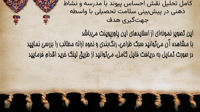 پاورپوینت کامل تحلیل نقش احساس پیوند با مدرسه و نشاط ذهنی در پیشبینی سلامت تحصیلی با واسطه جهتگیری هدف