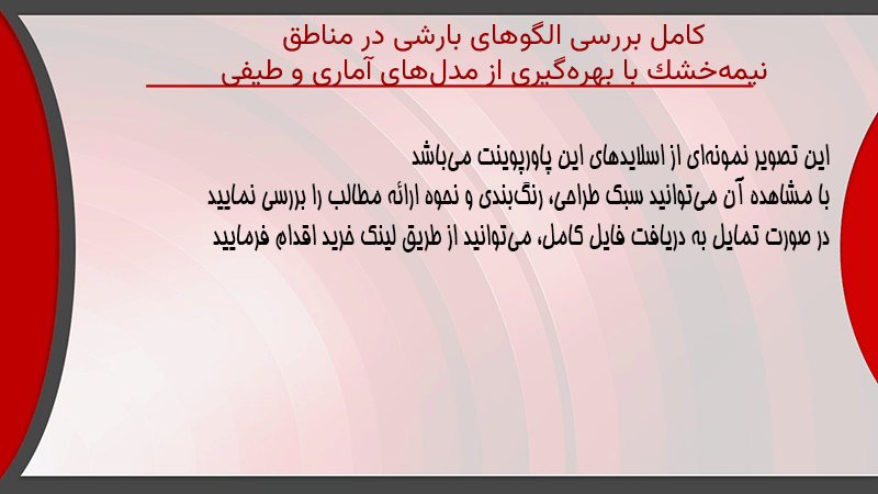 پاورپوینت کامل بررسی الگوهای بارشی در مناطق نیمهخشک با بهرهگیری از مدلهای آماری و طیفی