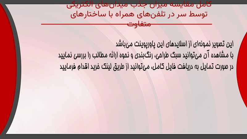 پاورپوینت کامل مقایسه میزان جذب میدانهای الکتریکی توسط سر در تلفنهای همراه با ساختارهای متفاوت