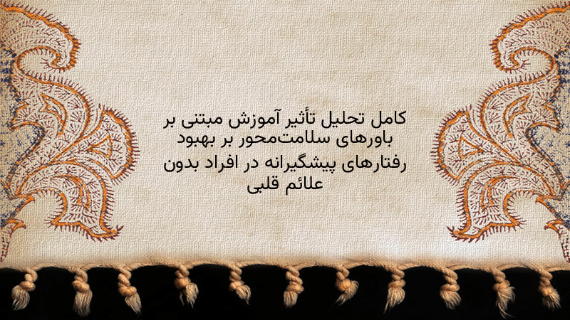 پاورپوینت کامل تحلیل تأثیر آموزش مبتنی بر باورهای سلامتمحور بر بهبود رفتارهای پیشگیرانه در افراد بدون علائم قلبی