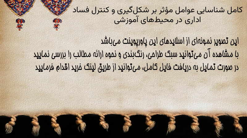 پاورپوینت کامل شناسایی عوامل مؤثر بر شکلگیری و کنترل فساد اداری در محیطهای آموزشی