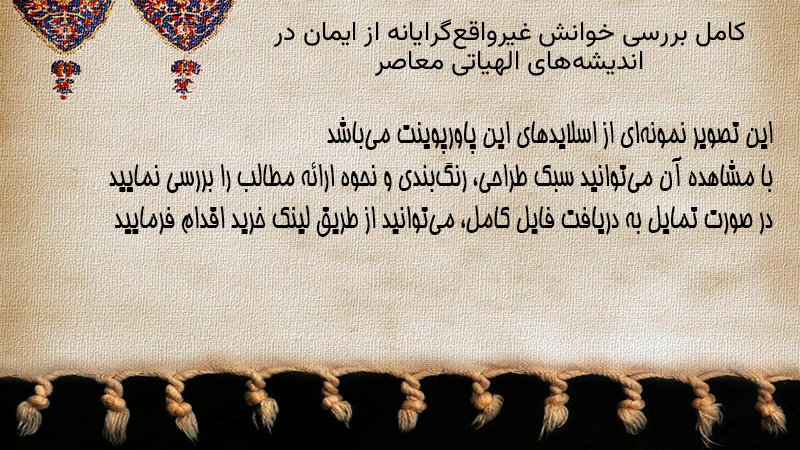 پاورپوینت کامل بررسی خوانش غیرواقعگرایانه از ایمان در اندیشههای الهیاتی معاصر