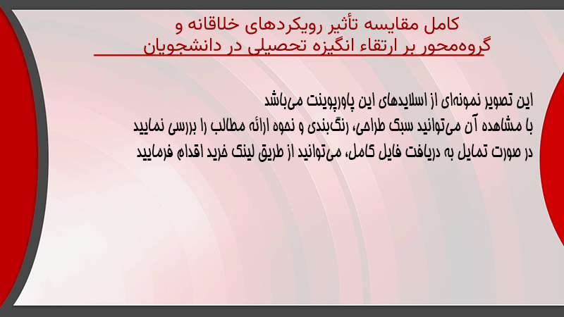 پاورپوینت کامل مقایسه تأثیر رویکردهای خلاقانه و گروهمحور بر ارتقاء انگیزه تحصیلی در دانشجویان