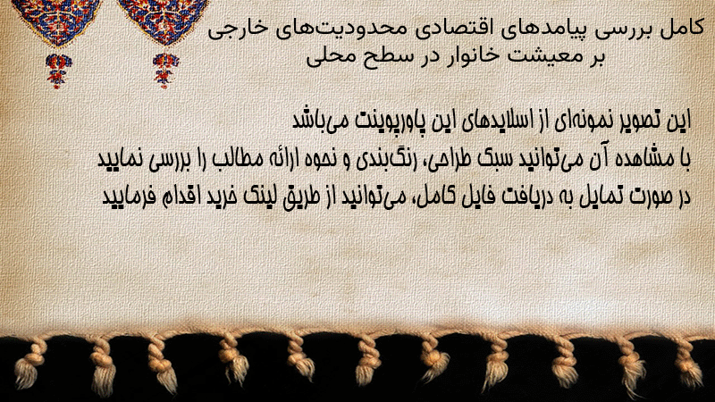 پاورپوینت کامل بررسی پیامدهای اقتصادی محدودیتهای خارجی بر معیشت خانوار در سطح محلی