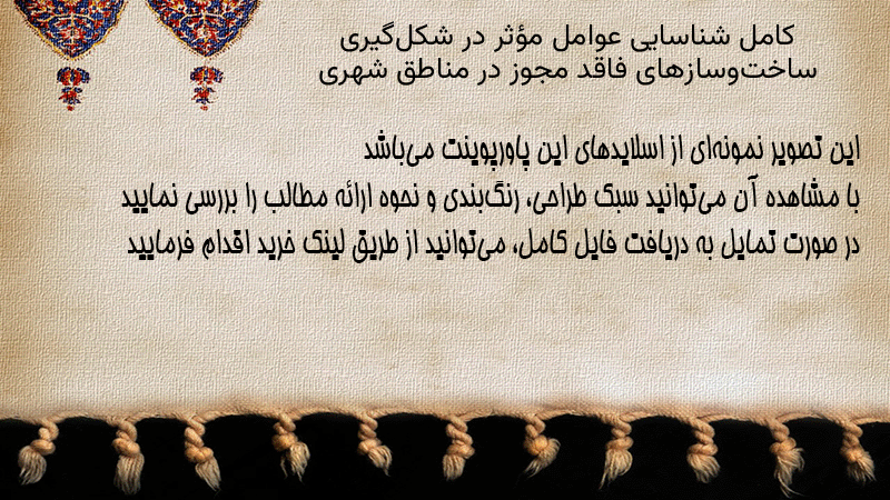 پاورپوینت کامل شناسایی عوامل مؤثر در شکلگیری ساختوسازهای فاقد مجوز در مناطق شهری