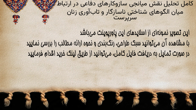 پاورپوینت کامل تحلیل نقش میانجی سازوکارهای دفاعی در ارتباط میان الگوهای شناختی ناسازگار و تابآوری زنان سرپرست