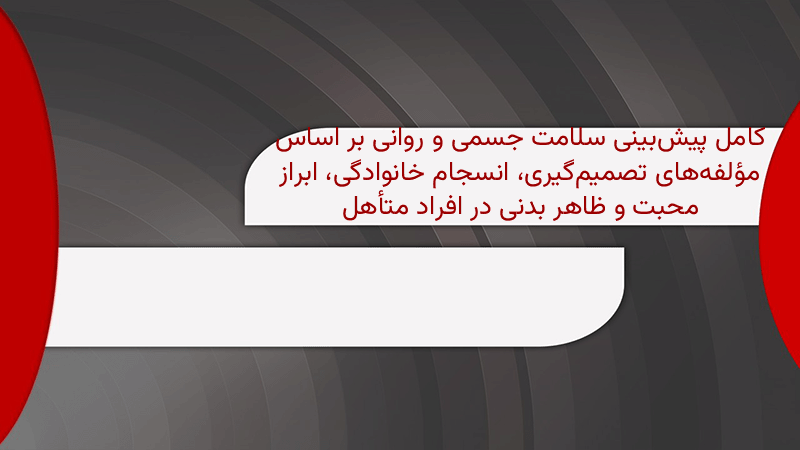 پاورپوینت کامل پیشبینی سلامت جسمی و روانی بر اساس مؤلفههای تصمیمگیری، انسجام خانوادگی، ابراز محبت و ظاهر بدنی در افراد متأهل