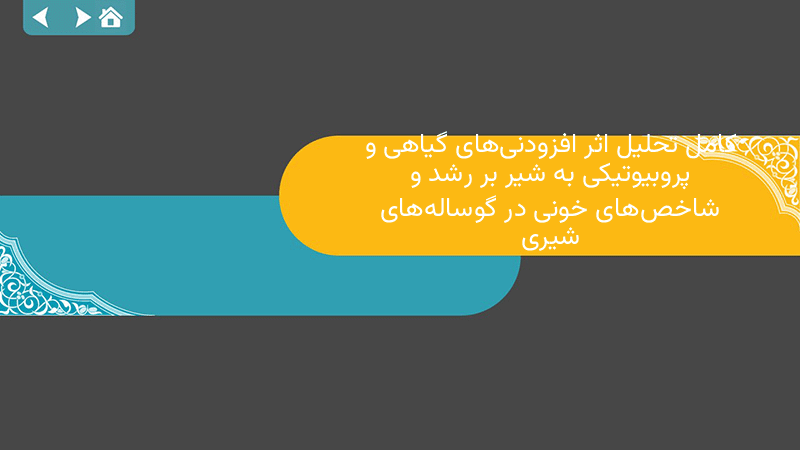 پاورپوینت کامل تحلیل اثر افزودنیهای گیاهی و پروبیوتیکی به شیر بر رشد و شاخصهای خونی در گوسالههای شیری