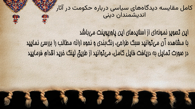 پاورپوینت کامل مقایسه دیدگاههای سیاسی درباره حکومت در آثار اندیشمندان دینی