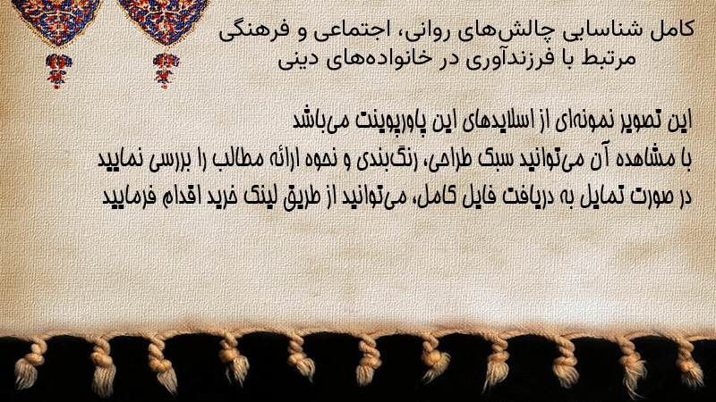 پاورپوینت کامل شناسایی چالشهای روانی، اجتماعی و فرهنگی مرتبط با فرزندآوری در خانوادههای دینی