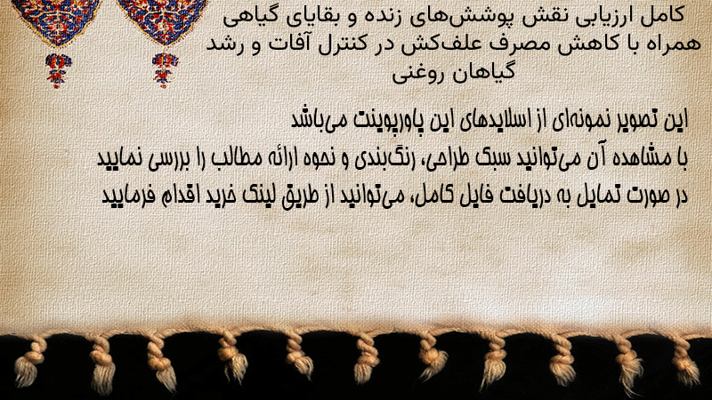 پاورپوینت کامل ارزیابی نقش پوششهای زنده و بقایای گیاهی همراه با کاهش مصرف علفکش در کنترل آفات و رشد گیاهان روغنی