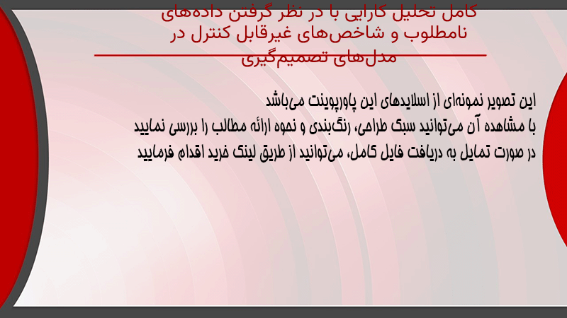 پاورپوینت کامل تحلیل کارایی با در نظر گرفتن دادههای نامطلوب و شاخصهای غیرقابل کنترل در مدلهای تصمیمگیری