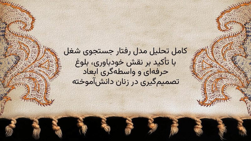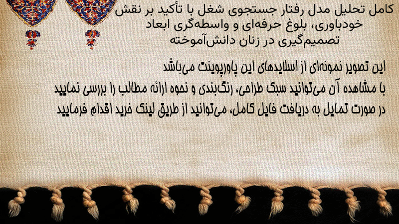 پاورپوینت کامل تحلیل مدل رفتار جستجوی شغل با تأکید بر نقش خودباوری، بلوغ حرفهای و واسطهگری ابعاد تصمیمگیری در زنان دانشآموخته