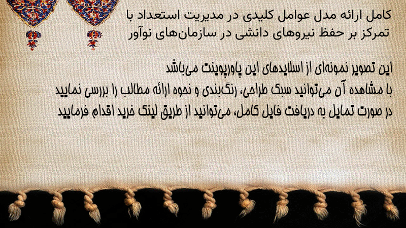 پاورپوینت کامل ارائه مدل عوامل کلیدی در مدیریت استعداد با تمرکز بر حفظ نیروهای دانشی در سازمانهای نوآور