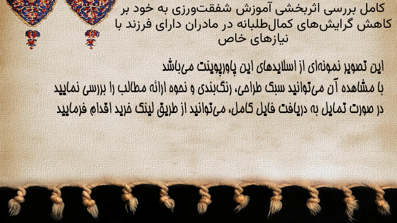 پاورپوینت کامل بررسی اثربخشی آموزش شفقتورزی به خود بر کاهش گرایشهای کمالطلبانه در مادران دارای فرزند با نیازهای خاص