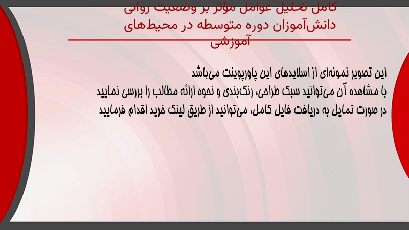 پاورپوینت کامل تحلیل عوامل مؤثر بر وضعیت روانی دانشآموزان دوره متوسطه در محیطهای آموزشی