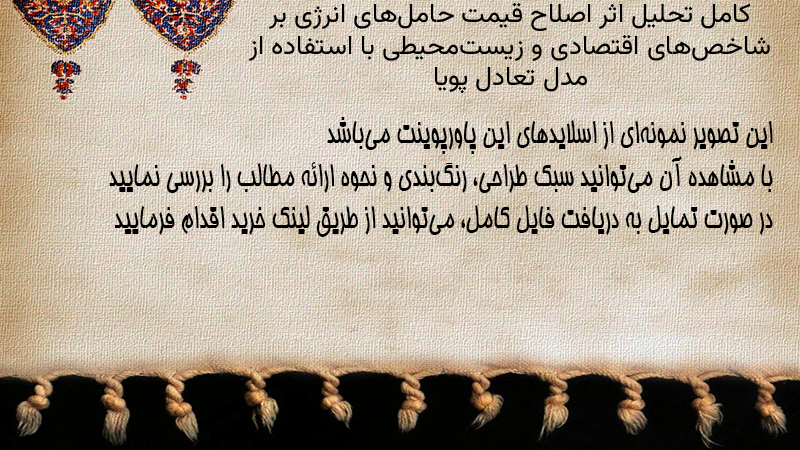 پاورپوینت کامل تحلیل اثر اصلاح قیمت حاملهای انرژی بر شاخصهای اقتصادی و زیستمحیطی با استفاده از مدل تعادل پویا