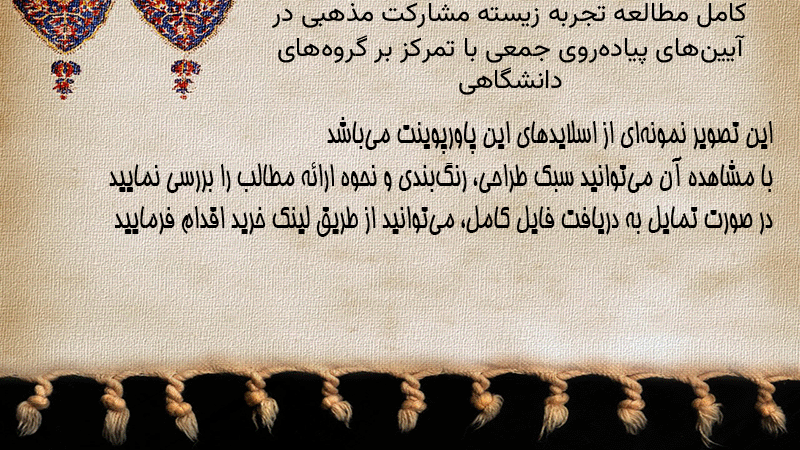 پاورپوینت کامل مطالعه تجربه زیسته مشارکت مذهبی در آیینهای پیادهروی جمعی با تمرکز بر گروههای دانشگاهی