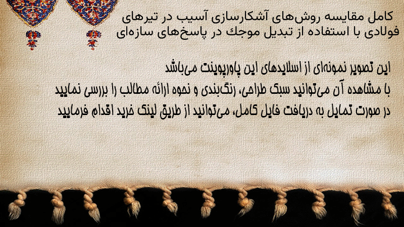 پاورپوینت کامل مقایسه روشهای آشکارسازی آسیب در تیرهای فولادی با استفاده از تبدیل موجک در پاسخهای سازهای