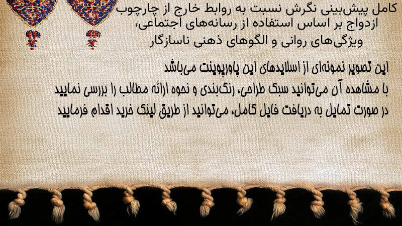 پاورپوینت کامل پیشبینی نگرش نسبت به روابط خارج از چارچوب ازدواج بر اساس استفاده از رسانههای اجتماعی، ویژگیهای روانی و الگوهای ذهنی ناسازگار