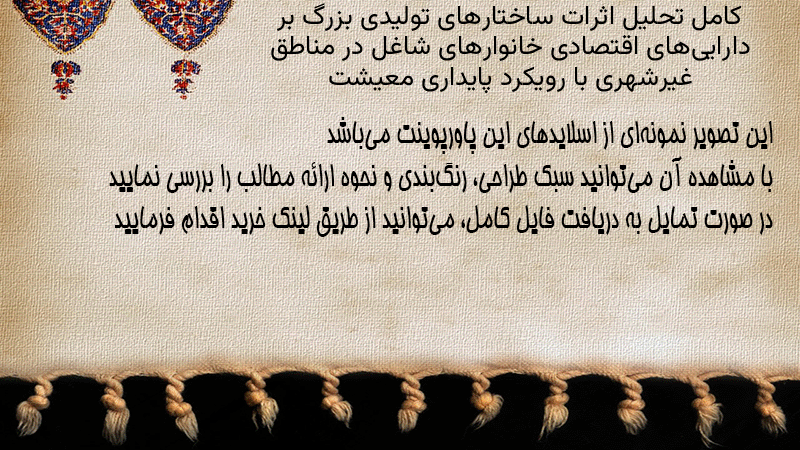 پاورپوینت کامل تحلیل اثرات ساختارهای تولیدی بزرگ بر داراییهای اقتصادی خانوارهای شاغل در مناطق غیرشهری با رویکرد پایداری معیشت