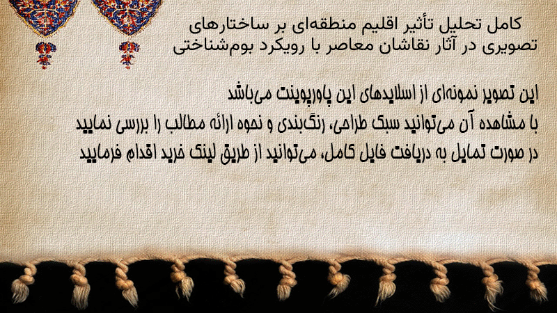 پاورپوینت کامل تحلیل تأثیر اقلیم منطقهای بر ساختارهای تصویری در آثار نقاشان معاصر با رویکرد بومشناختی