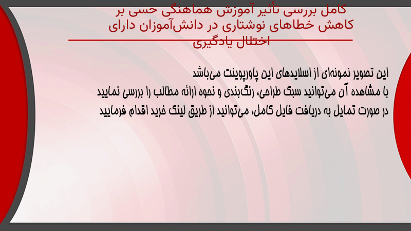 پاورپوینت کامل بررسی تأثیر آموزش هماهنگی حسی بر کاهش خطاهای نوشتاری در دانشآموزان دارای اختلال یادگیری