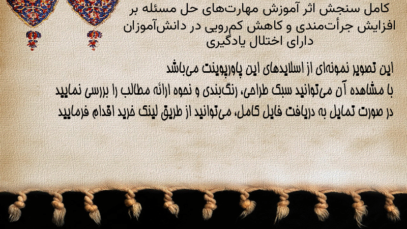 پاورپوینت کامل سنجش اثر آموزش مهارتهای حل مسئله بر افزایش جرأتمندی و کاهش کمرویی در دانشآموزان دارای اختلال یادگیری